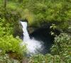 The greenery surrounding the Punch Bowl Falls pool area is quite lush. I had to take this picture of the bolder that has been completely covered with growth. Also, please note the crystal clear water! You can see bottom as well as if there were no water at all. (Probably better, because the water magnifies what is below its surface!)