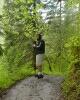 Here LeRoy is leading the way back down the trail. Carrying my walking stick, and with his hood up, he looks like he just might fit into the background of one of the Lord of the Rings movies; or perhaps we will see an Ewok around the next bend of the path.