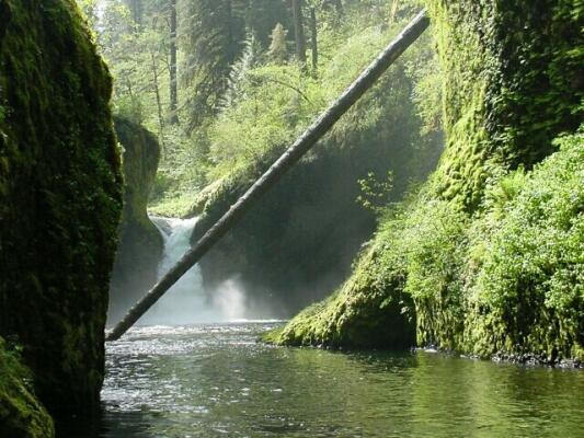 Now we have made it back to the path to the Punch Bowl Falls path, and taken it down to Eagle Creek. We are actually looking over a short falls, from upstream. Punch Bowl falls lies behind the camera at this point. I felt this valley with the creek running through it was definitely worth a picture!