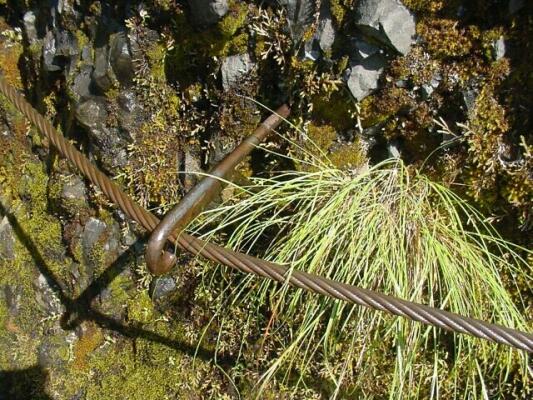One of the anchoring metal hooks, that hold the safety cable in place.