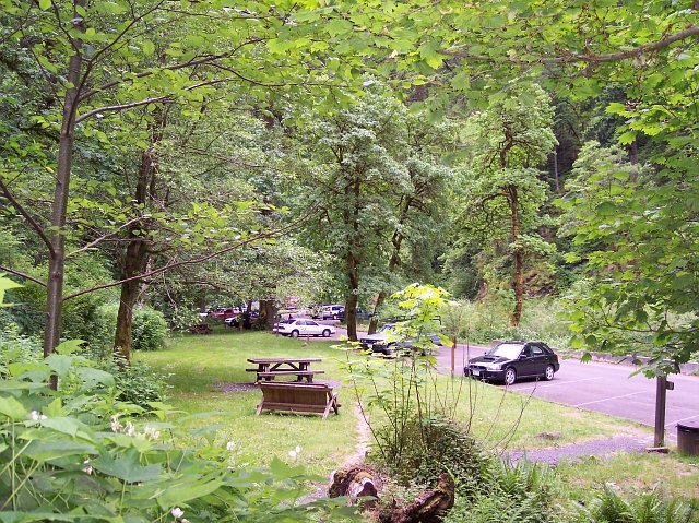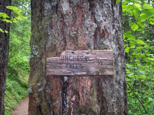 As busy as this trail is, I am sure that they have a problem with people wanting to set up their camps anywhere there is an opening in the forest, even at the Punchbowl Falls viewing area. (However, all is not lost for the would be camper, there are several authorized camping areas up the trail a ways from here.) |