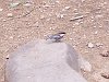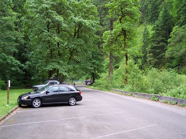 Back down at parking lot level and once again looking towards our van and LeRoy. The trailhead is off to the left, and out of view. |