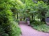 The wooden bridge, where Dotti and LeRoy are walking in this picture, told us that our hike was nearly over when we hit it on the way back. Here we were only thinking about the little wonderland around us. |