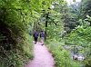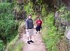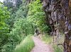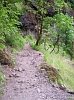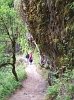 Dotti and LeRoy up ahead, waiting for me to catch up. Notice the small trees on the left digging into the steep rock wall extending up from the trail. |
