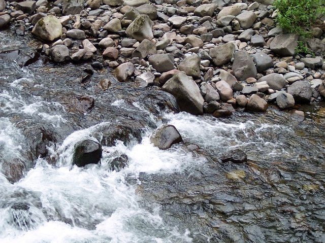 There is nothing like the relaxing sound of water dancing down a streambed like this. Water magically changes from being as clear as glass into frothing opaque white foam, and then back again, all in an instant. |