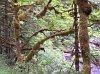 More of the mossy growth on the tree trunks. It looks as if the trees were cold and had put on some coats of green. |