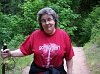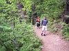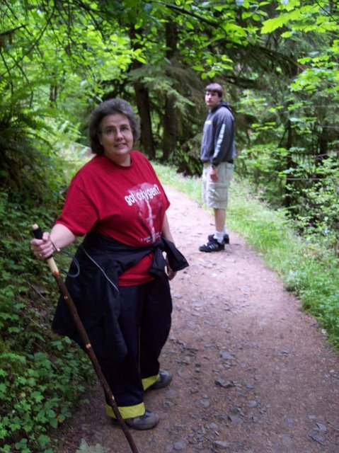 Dotti caught me here after yelling, “Stop!” I look stiff as a rail.J The trailhead is behind us now, and we have officially begun our hike. |