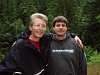 My handsome son and I sharing a happy moment on the trail. The forest forever is reminding us of the cycle of life with things like the dead tree stump to the right, surrounded by green life exploding everywhere. |
