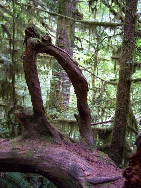 These two trees look as if they are bending over, and reaching out to pick something up, or to grab something walking by unawares. Since they were distracted in the other direction, they let us pass by safely. J |