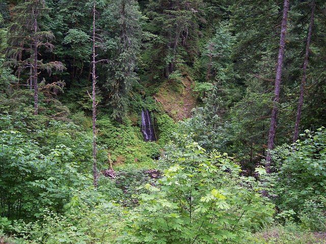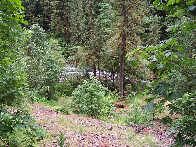 We are starting to get up above Eagle Creek now. We are looking down into the little stream valley and there, on the opposite bank, is a pretty little waterfall. |