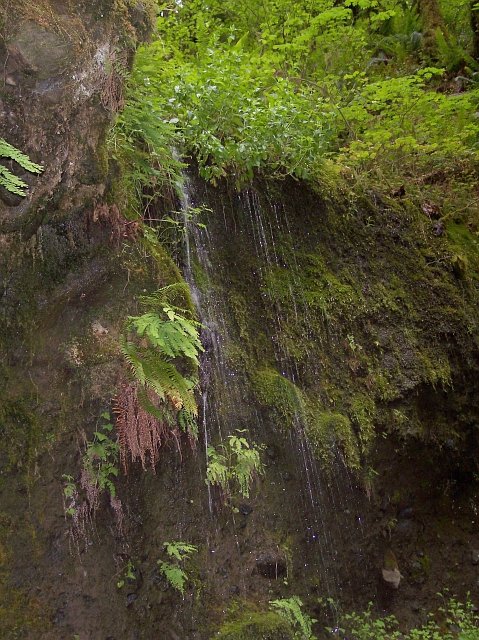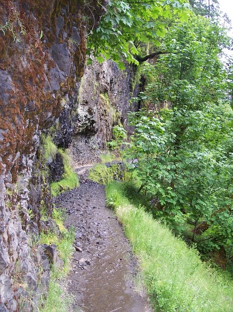 This is a continuation of the previous picture, and you can see what became of the streams that fell onto this rock surface. Ultimately the water will find its way into Eagle Creek, and then on into the Columbia River, to be returned to sea from whence it had risen as vapor some time before. |