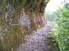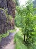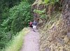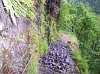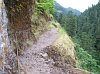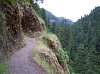 Once again the rock wall is seen, and it even overhangs the trail a bit here. Off to the right the drop has become even sharper. It definitely took a lot of work to cut through this part of the trail. |