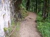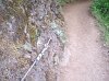 A sheer rock wall to the left of the trail, and a pretty good drop developing off to the right. In the name of safety, this part of the trail requires your full attention. |