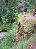 LeRoy and Dotti taking a moment to enjoy the wonderful view. The basalt wall behind them is very interesting how it leaps upwards, and at the same time sweeps out and over the trail. Architects work very hard to try to make buildings appear this beautiful, and here molten rock has frozen, been carved by water, broken up by plants' roots, and now chisled through by trail blazers, and we get to enjoy it. |