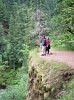 This is a point on the trail that is really nice, because the little “platform” of rock that LeRoy is standing on extends out from the trail, and the sharp drop is easily visible from the point of the trail that I was standing on. Dotti is stepping up to join LeRoy. |