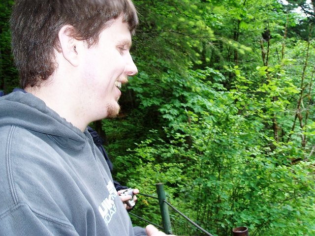 This is my favorite picture of LeRoy on this hike, and Dotti took it. His happy smile backed by this tremendously beautiful scene of misty sky, lush green forest and waterfall. Sometimes everything just comes together. J |