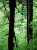 Looking between these two trees, seeming like pillars in a Greek temple, a small patch of Eagle Creek is just visible among all the heavy forest growth. |