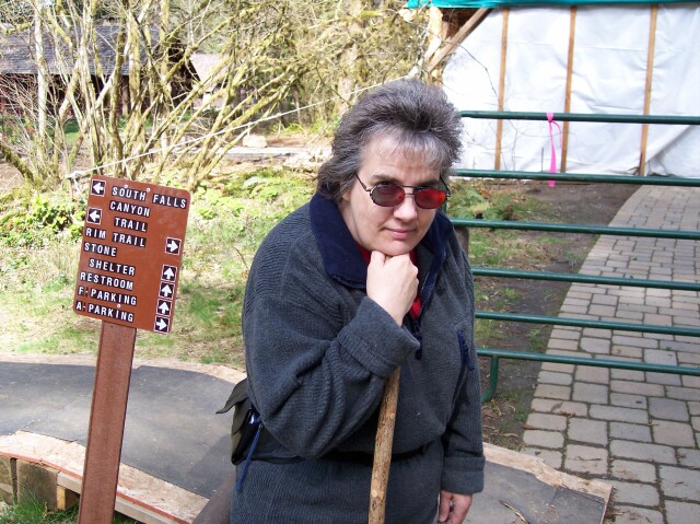 Dotti and I chose the day of the Spring Equinox of 2004 to do our first CFHC hike, meaning that daylight would be visible for 12 hours all over the world, and therefore, day and night would be exactly equal in length. But that is not why we chose this day. It was a day with great weather for a hike, and we were ready to do some walking. We started off from the parking lot around noon, and finished up sometime after 3PM. We caught them in the middle of some renovations, and also with a segment of the Canyon Trail closed due to a trail event that they had not been able to recover from yet. They didn’t say what the problem was, but it was probably a landslide across the path. The temperature held pretty steady in the low 60s for our entire hike. The sun didn’t really warm us up much, and the clouds did little to cool us off. I didn’t bother with a jacket this time, and Dotti had a heavy shirt that she had on at the start of the hike, but she removed before we had gone very far. |