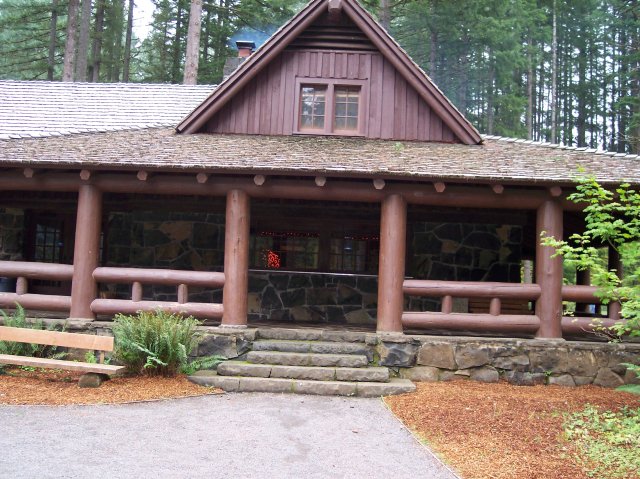 Notice the smoke coming out of the chimney. The year before we had a lot of rain when we did this hike and it was fighting to climb out of the 40s for temperature. The fire in the fireplace in that lodge was very welcome that day! |
