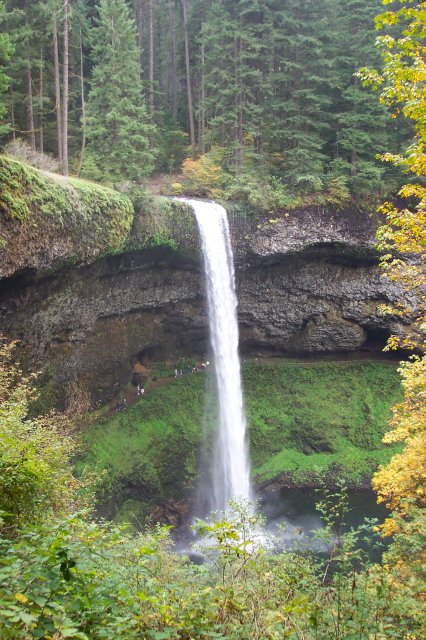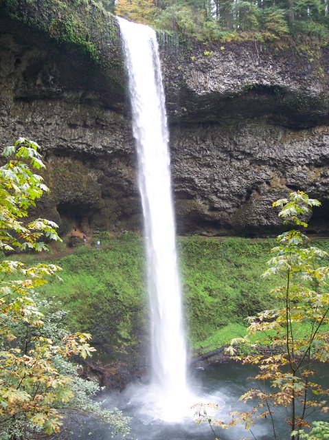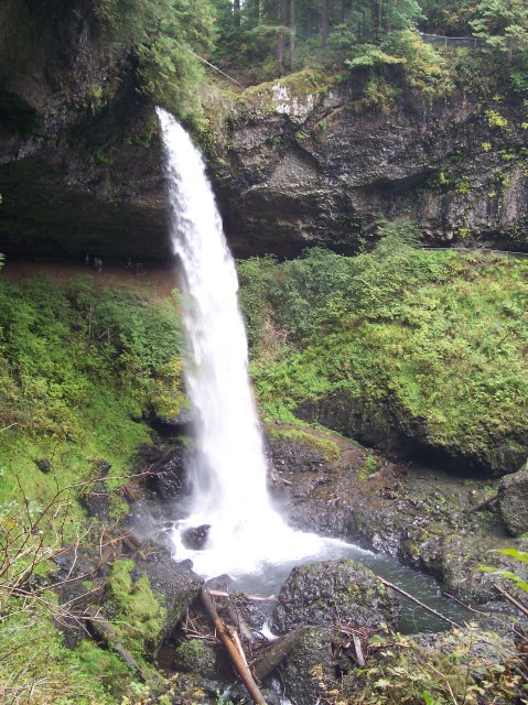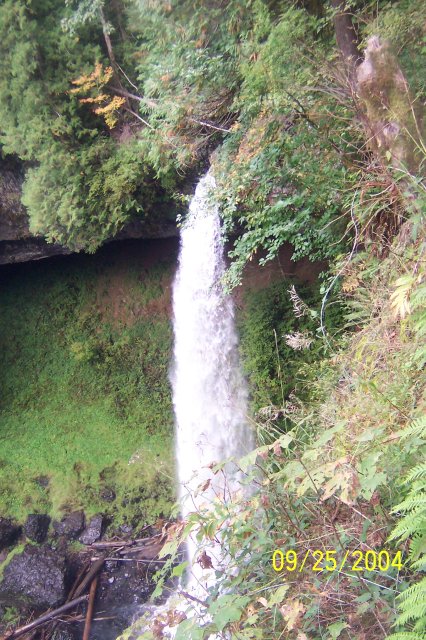 Moving a little farther away, Joan has taken a very nice shot of the entire South Falls. Now the people under the falls look very small. It lets you know that the water really is falling 177 feet (about the height of 30 men). |