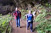 As water from North Falls crashes into the rocks below, and then calmly exits to the right, Dotti and Joan share a happy moment. The nearly dead tree on the left looks like a Dali creation, but it fits this eerie underground world. Looking up over the ladies' heads, it can be seen that our path is already headed upwards by the time it leaves this cavern. |