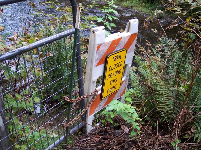 After passing the people I arrived at this disappointing sign. I wasn't going to get to walk under the falls and see where the trail led. |