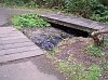 This the massive flow of water that goes over Frenchie Falls, and that explains a lot. However, while the Maple Ridge Trail continued on across the bridge at the right of this picture, our goal was across the bridge on the left, and we could smell victory just ahead. |