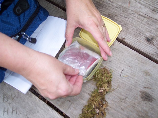 Upon opening the container, it appeared that the contents were safely stored in a plastic bag to keep out the moisture, of which there are normally copious amounts in this area. |