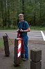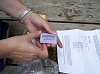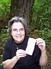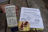 We see Joan holding up the back of the stamp, and lying on the table you can see the instructions that we had previously printed out from the Internet on how to find this letterbox. |