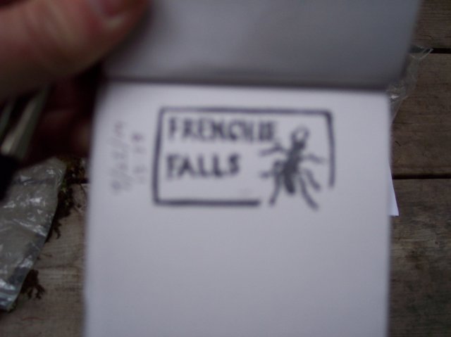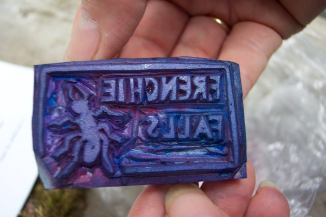 Here is the stamp that we found in the letterbox, and it said, "Frenchie Falls." |