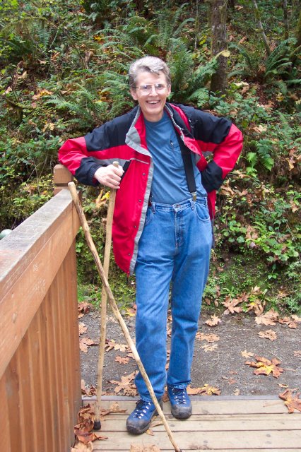 Dotti resting on her walking stick for a moment. |