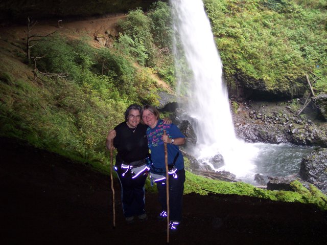 Still under the falls, a place that people love to linger and gaze, Dotti took another picture of Joan and I. |