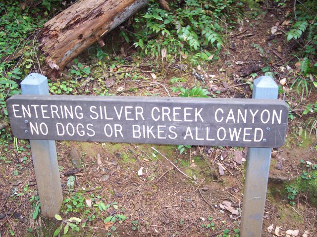 The bridge across the South Fork Silver Creek marks the point where the Canyon Trail was closed. Our plans at this point were to take the same route we had taken earlier in the year, which included walking the trail that runs down under the falls, and over to the left side of this bridge, and then to cross the bridge and return up to the level of the top of the falls. From there we would take the Maple Ridge Trail that runs more or less parallel with the Canyon Trail, but up on the ridge of the canyon, rather than along the creek. |