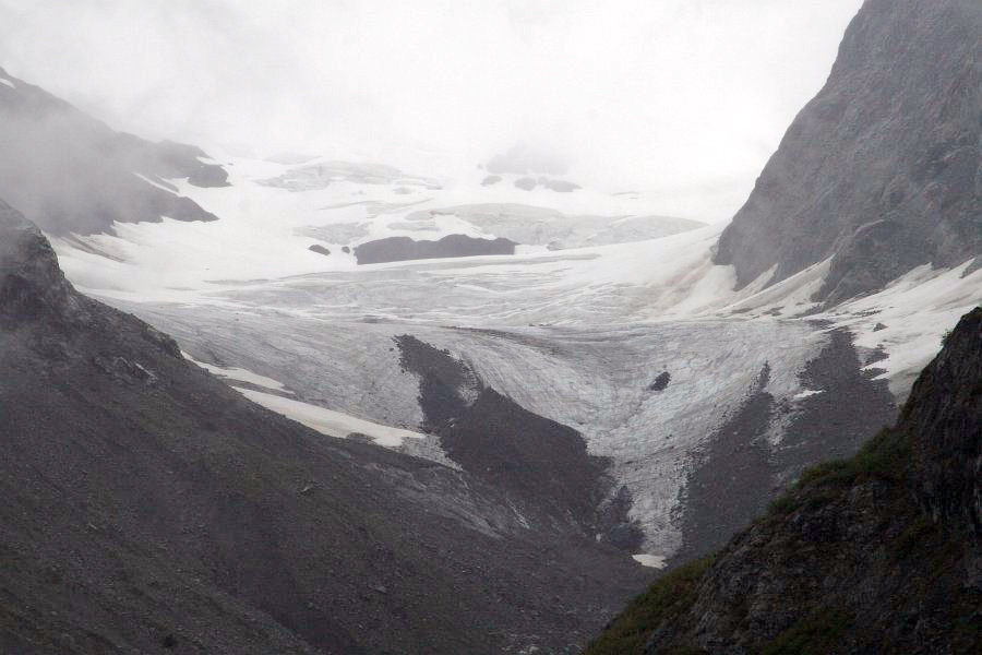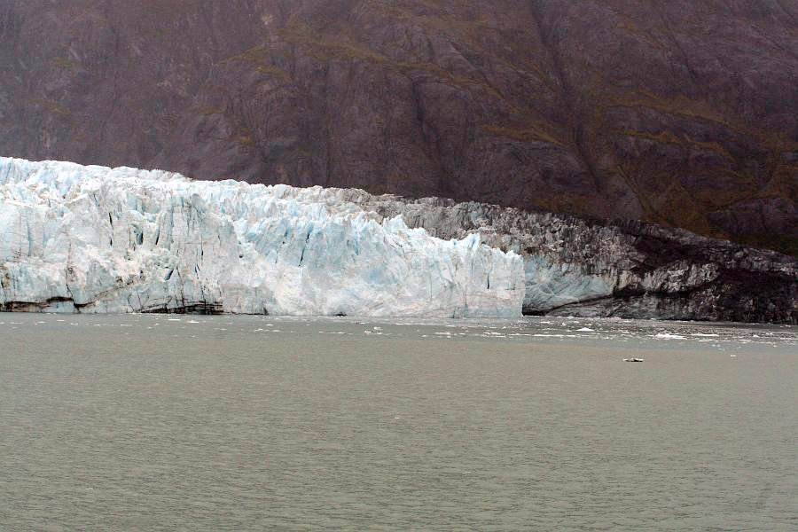 In order to give both sides of the ship a good view, the captain had the ship going in various circuitous paths. This is the Lamplugh Glacier, off the starboard side and aft of the ship. The ship was often turning and we would soon be going past this same glacier, in the opposite direction, on our way into the John Hopkins Inlet, over the mouth of which the Lamplugh Glacier stands guard.