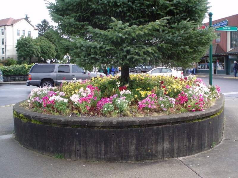 Just as we were getting our first glimpse of downtown Sitka, at the corner of Katlian and Lincoln Streets, we saw this delightful circle of flowers.