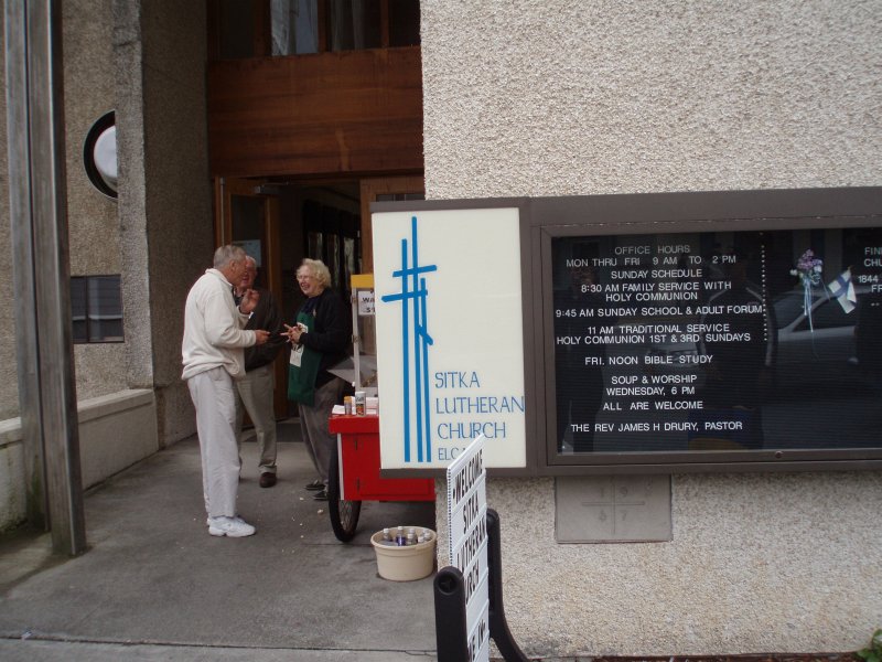 Before heading back along Lincoln Street, retracing our steps from earlier in the day, we stopped in Bear Country Gifts and did a wee bit of shopping. Naturally we kept it to the Simple Bear Necessities. We made it back beside St. Michael’s Cathedral, but this time we came along the other one-way side of Lincoln Street beside it. Situated across from the cathedral stood the second church to be built in Sitka, and the very first Protestant church to be built on the west coast of North America was the Sitka Lutheran Church.