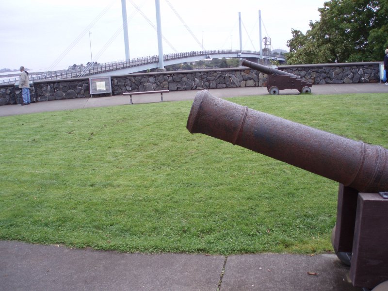 Two old impotent cannons point out to sea, unable to fire a ball, and even it if they could, the cannonballs they used to project would just bounce off the metal ships of today.