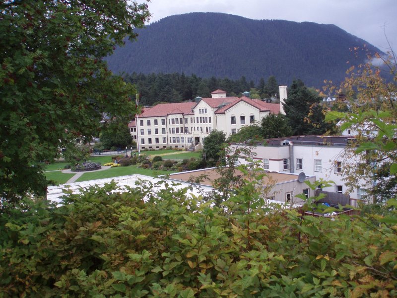 Following Harbor Drive, as it comes down off O'Connell Bridge and makes its way into Sitka, soon to pass by Harrigan Centennial Hall.