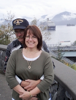 Jim and Tammy were intently studying their menu to find just the right thing to eat. Jim has on a hat from one ship and a sweatshirt from another. The ships were worlds apart, and for us that was a happy difference for this trip.