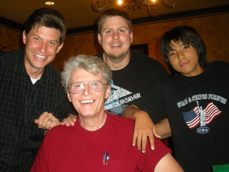 Here we have the Coon men. Our oldest son Glenn is on the left and our other son LeRoy is to the right of me, with Grandson Kai, on the far right sporting a patriotic tee-shirt leaning on his grandpa's shoulder.