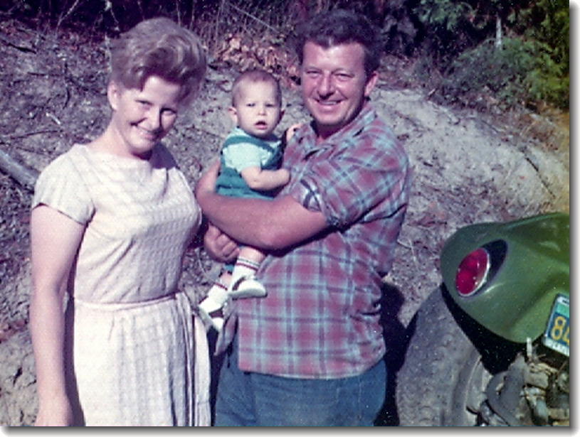 This picture was taken in September of 1972, when Glenn was not even a year old yet, almost exactly 39 years ago. Grandma, Glenn, and Grandpa were there in Milo, Oregon, and it was the last time I saw my father alive. But it is amazing how much of him lives on in his grandson. And wasn't Glenn cute there in his little jumper? And Mom looked so happy. It was a Kodak moment as they say.