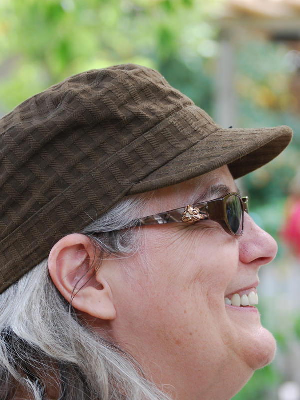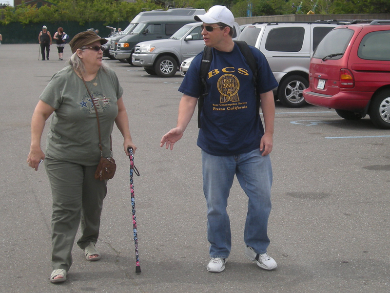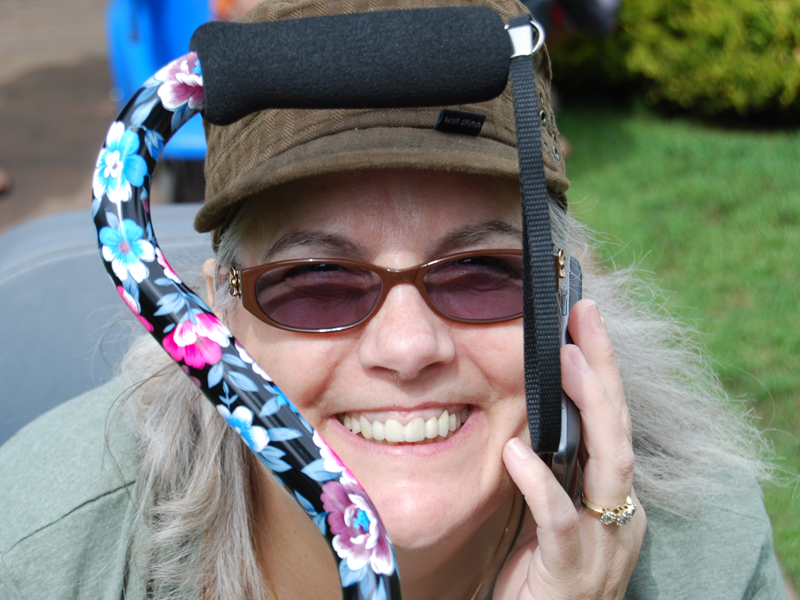 My beautiful wife now had her cart, and was putting her cane away when I took this picture. She was also talking on her cell phone, or "multitasking" as she calls it.