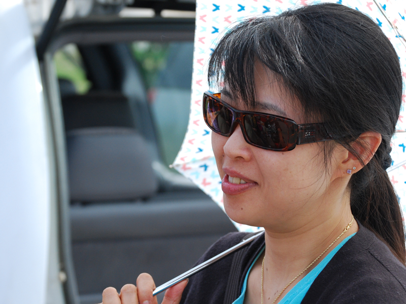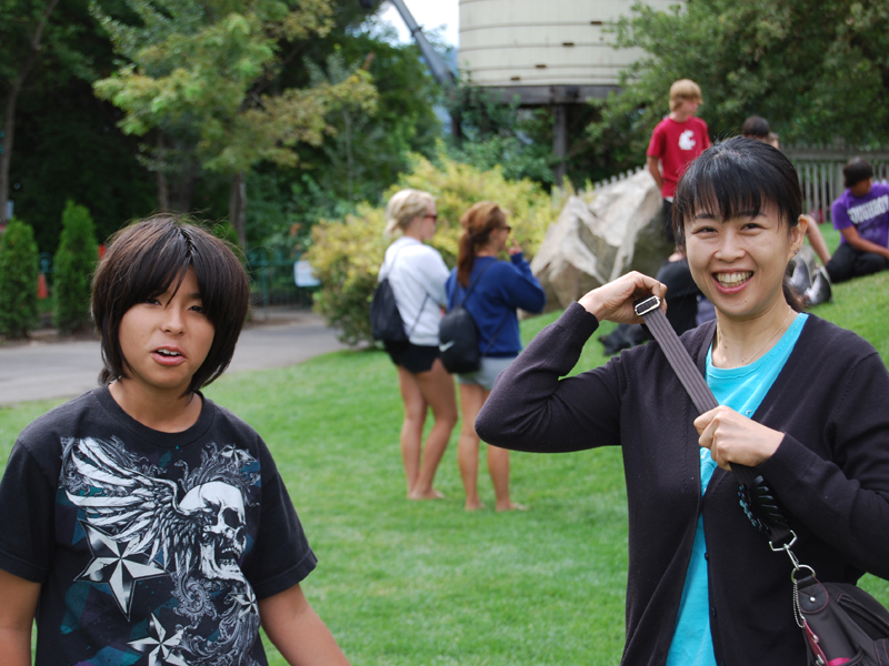 One final shot of Miho in the parking lot, with the van's rear door standing open as we were putting things away after lunch. It was time to head back into the park for some fun!