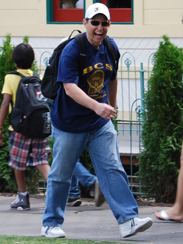 Miho was emphasizing the importance differences between the thought of Plato and Aristotle on the concepts of forms and being, while Kai is thinking, where are the rollercoasters? You can see Dotti and Glenn in the background as we all were heading for the front gate to the park, and I was walking ahead of the group trying to see if I could get some pictures looking back.
