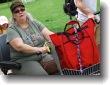 They realized there were a couple of things they were carrying that might be bad for the ride, so Dotti drove over near where they were standing and got out of her cart to retrieve the items.