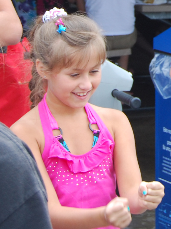 It was about 5:15 p.m. that the swimmers returned, and the two groups merged once more. Rachel had had a busy day and was a little tired by this time, and found a comfortable bench, and so I used the dark background to surround her lovely smile for this shot.