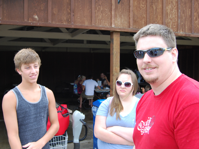 Glenn is checking out his map, while Kai is looking at Grandpa taking the picture. In the background, to the right of Glenn, you can see Sarah, and Rachel, who was partially blocked by a green sweatshirt. The sky was overcast a bit and there were few sharp shadows.