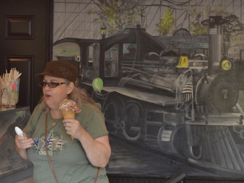Once inside the park, we turned left and went straight across the train tracks to the rental booth so we could rent a cart for Dotti to drive for the day. While her left hip was getting better, it still was a bit weak, and the right hip was getting more and more painful every day that went by. So, the cart was a very important part of our plans for the day.