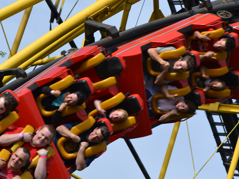 This is actually the same photo as the previous one, but I left it in its original orientation, and showed more of the train. It was a moment frozen in time, when the players were experiencing a string of events hitting them far too quickly to process entirely. Just as one turn was upon them they were leaving it and hitting another in different direction. Upside down they defeated gravity only to plummet, twist, and then ascend once again. Wow!