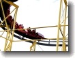 Miho and Glenn on the Corkscrew! They are both laughing and enjoying themselves. I was positioned under the track, and looking up at them as they raced by.